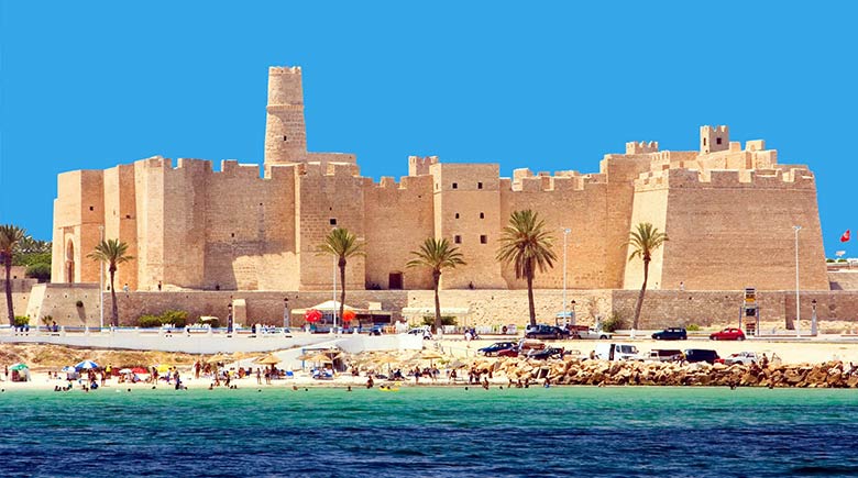 Tunisia, officially the Republic of Tunisia, is a country in the Maghreb region of North Africa. It is bordered by Algeria to the west and southwest, Libya to the southeast, and the Mediterranean Sea to the north and east. Tunisia also shares maritime borders with Italy through the islands of Sicily and Sardinia to the north and Malta to the east. It features the archaeological sites of Carthage dating back to the 9th century BC, as well as the Great Mosque of Kairouan. Known for its ancient architecture, souks, and blue coasts, it covers 163,610 km2 (63,170 sq mi), and has a population of 12.1 million. It contains the eastern end of the Atlas Mountains and the northern reaches of the Sahara Desert; much of its remaining territory is arable land. Its 1,300 km (810 mi) of coastline includes the African conjunction of the western and eastern parts of the Mediterranean Basin. Tunisia is home to Africa’s northernmost point, Cape Angela. Located on the northeastern coast, Tunis is the capital and largest city of the country, which is itself named after Tunis. The official language of Tunisia is Arabic. The vast majority of Tunisia’s population is Arab and Muslim. Vernacular Tunisian Arabic is the most spoken language, and French serves as an administrative and educational language in some contexts, but has no official status.